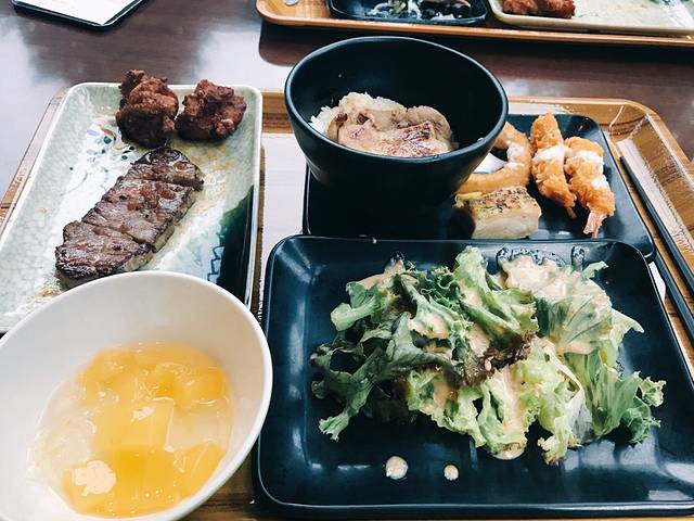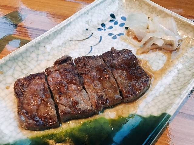 满满铺了一层的肉烤的外焦里嫩,最值得一提的酱汁过于美味,不知不觉一口饭一口肉的,满满一大碗就这么见了底。吃完后打了个罪恶又悔恨的饱嗝。