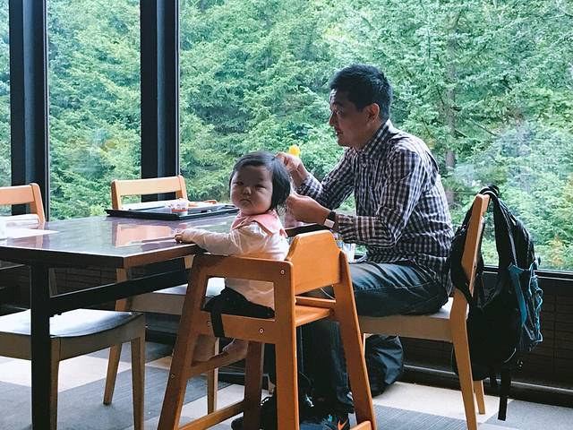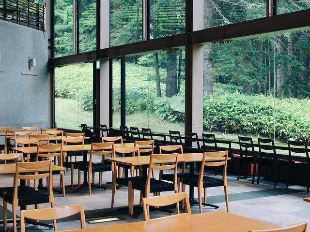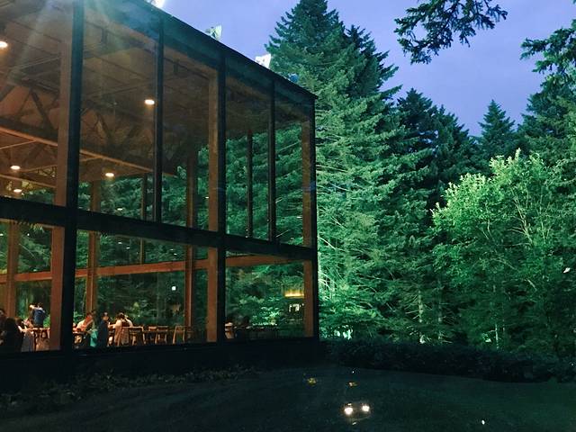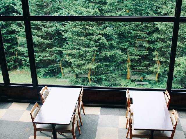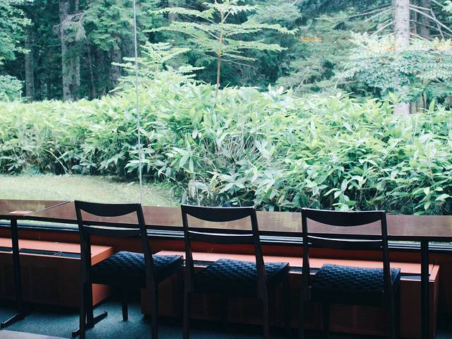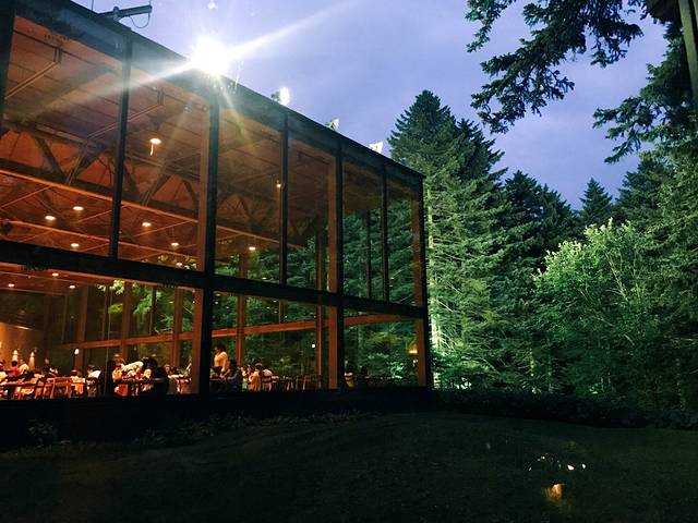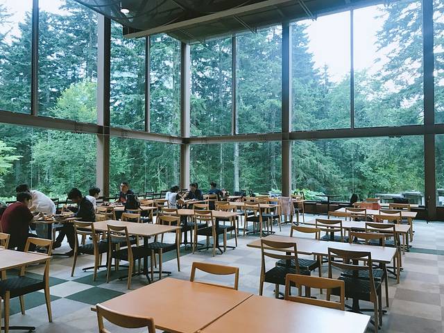 休息了一会就打算前往这里最有名的森林餐厅吃完饭,所谓森林餐厅其实就是三面都是落地窗,能看到的都是树,就好像在森林里用餐一样。霍建华和胡歌来 北海道 拍写真的时候就是在这个餐厅拍的,甚至连相同位置都被我找到啦哈哈如下图就是这个位置,胡霍CP同款