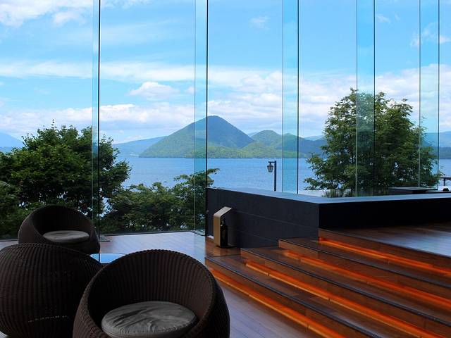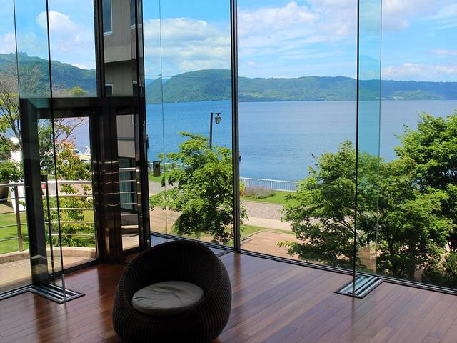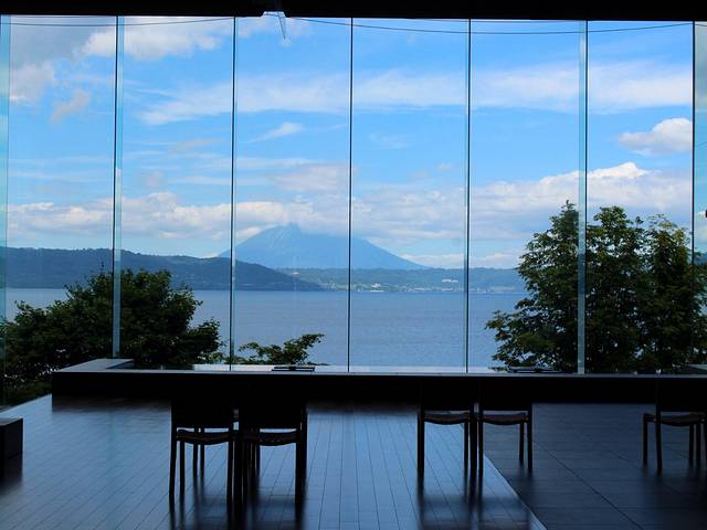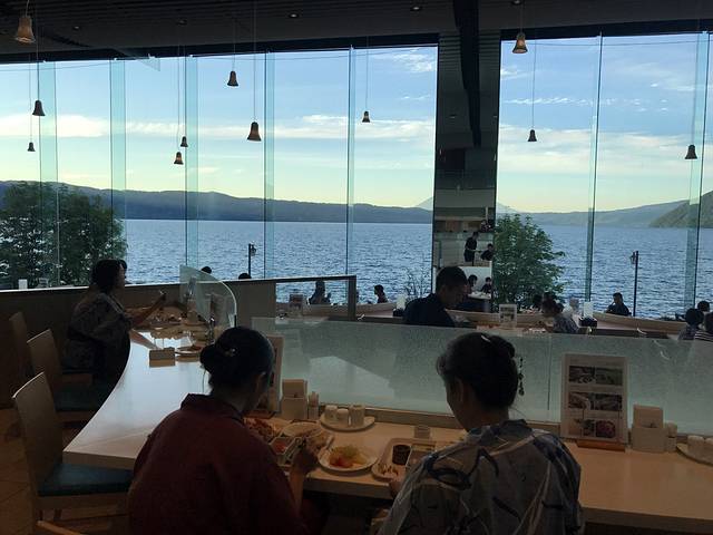 酒店大堂无敌的景观,大大的落地窗边, 洞爷湖 的景致一览无余。