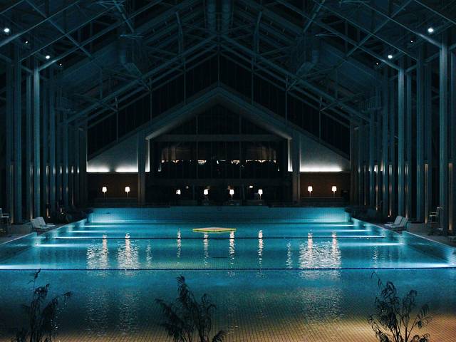 这儿是微笑海滩,有 日本 最大的人造泳池,每隔一小时会有人工造浪,不过9点就关门了 ,我们来的时候,同一班车的小朋友下车后看到关闭就嚎啕大哭,家长们却极其淡定,来一句残念就给打发了,哈哈特别有意思,不过我们是来泡温泉的,温泉在泳池旁边的木林之汤,并非是天然温泉,只是意境还不错,面对着森林