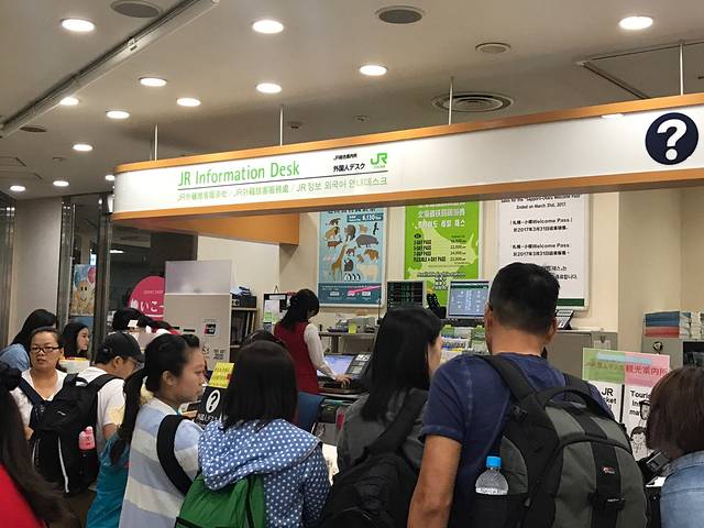 之前查过,JR站的外国人服务中心是八点半开门,于是八点半我们准时到达,却发现大家都有先知,排了好长的队。不过工作人员也不少,叫起号来挺快,一共有中文、英文、韩文三种服务,遇到哪个柜台全拼人品。就在我纠结要是遇到韩文该如何是好的时候,轮到我了,然后接待我的却是一位讲日语的妹子。。。。说好的外籍服务呢?于是,接下来整个过程在我仅有的几个日语单词+眼神交流下完成。机智的我提前工作做的还是到位的,我把我要划定位置的车次都已经提前写在了白纸上,写中文就可以了,反正他们能看懂就像我们也能看得懂日文站名一样。