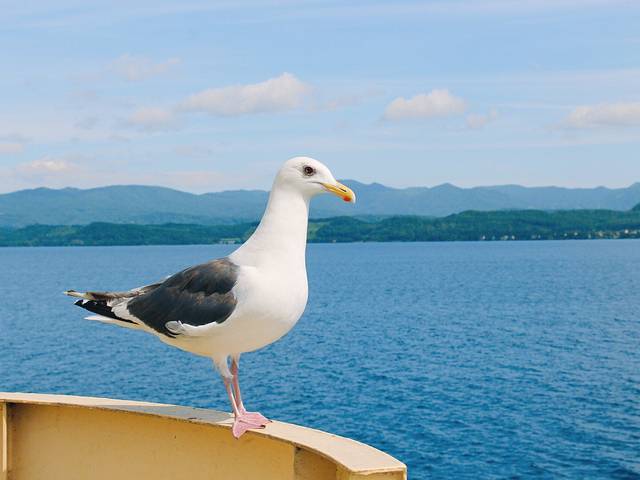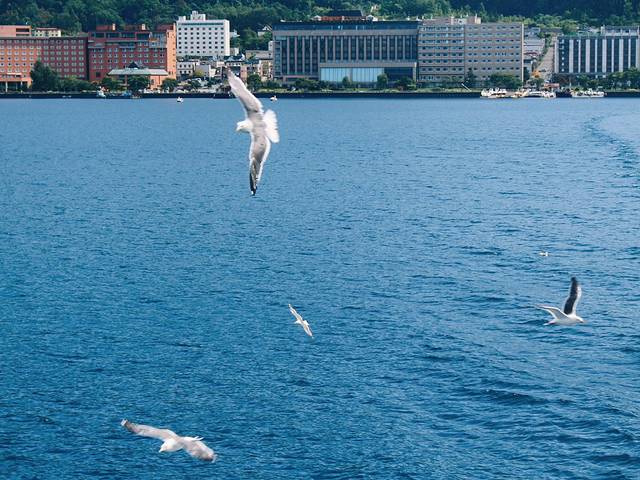 这是 洞爷湖 有名的大白鸟,可以买了零食投喂