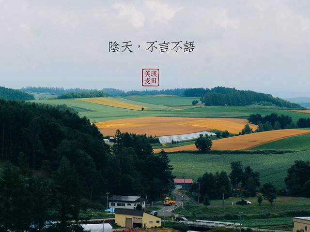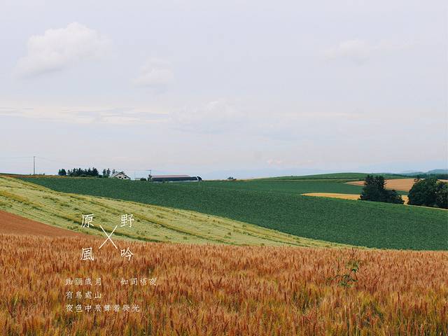 我的美瑛打开方式如下,真的不是我拍照水平太差,而是我遇到了阴天。这大概是我7天中遇到的天气最不给力的一天了,然而美瑛又是我最期待的一天。因为比起梦幻的薰衣草花田来说,我好像更喜欢风吹麦浪的苍凉感。要是蓝天白云,那拼布一般的麦田一定美极了。