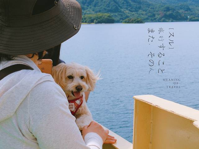 饱饱的一餐结束后,打算坐船游览 洞爷湖 ,船上遇到一只可爱的小狗,被主人抱着可温顺了