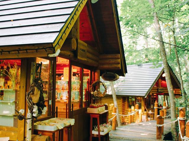 十几幢小木屋散布在森林里,每一家都卖着不同的手工艺品,可以看也可以买,但是观察下来几乎没人买。手工艺人都很认真的制作着手里的小玩意。