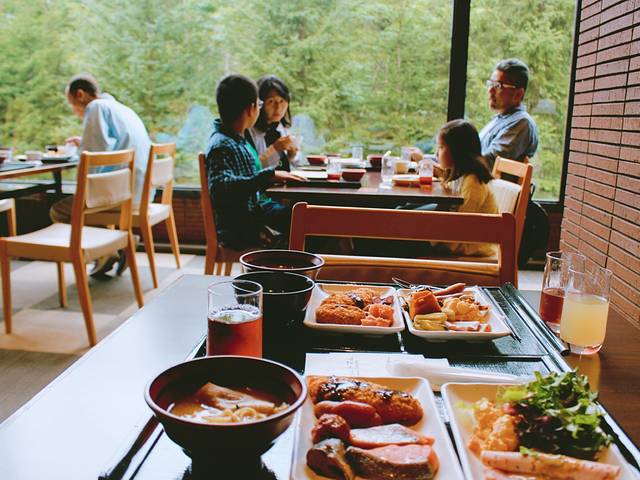 远处那两栋高楼就是 星野 在此的另一家酒店Risenori,比塔娃高端,价格也更贵,不过据说房间特别给力,每一间靠窗的位置都会有个大浴缸哦,对着森林泡澡的滋味,真美好啊,如果还有机会再来这里,一定体验下这一家。
