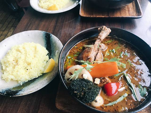溜达了一下就去品尝了这几日一直想尝试却没有机会吃的 北海道 另一大特产:汤咖喱。其实就是把食材都浸在调制的咖喱汤里面