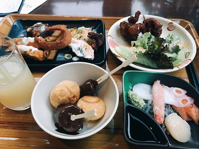 此行绝对可以打满分的酒店,入住则可随意享受温泉,并包含早餐及晚餐,晚餐为酒店内自助,晚上还可赏花火,最值得一提的还是温泉啊温泉!好几个池子,室内有新鲜水果温泉,室外的展望温泉更是给力,可以望着 洞爷湖 湛蓝的湖水一边泡汤,要是天气再冷一些会更舒适的。