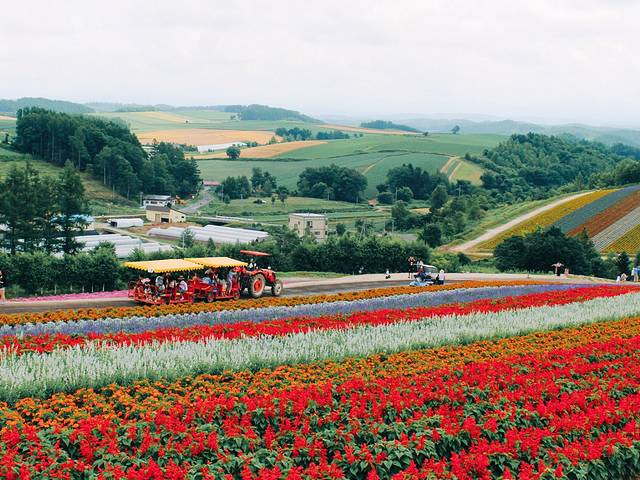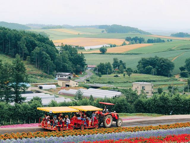 关于美瑛的游览方式,骑行显然是不适合懒散的我们,于是我们选择了 日本 版的跟团一日游,乘坐游览巴士车去几个景点打个卡,拍个照就完的那种,事实上在阴天也就适合这样玩耍了。美游巴士的车票有两种购买方式,一种是在车站的指定点提前三日购买,另一种是拼人品现场购买,卖完为止。