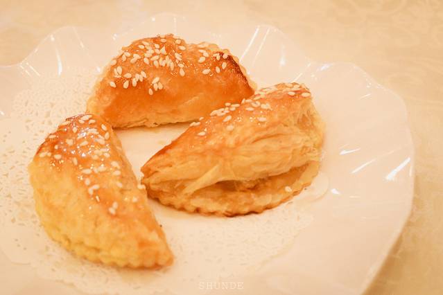 我以为榴莲酥会上另外一种的 就不是这种外壳酥饼的 但是同样不错 榴莲味很浓 我光顾着拍照错过了它最佳的食用时间 不过我同学说挺好吃的