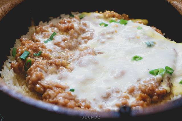 猪肉饼 窝蛋 跟米饭搅拌在一起 口感丰富 意料外的好吃