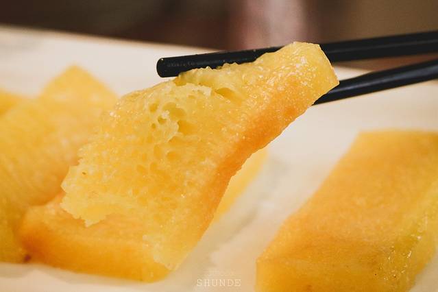这个黄金糕给满分 松软程度刚刚好 软软糯糯的很有弹性 甜度适中 我们选的是蒸的 很好吃 也不上火 还有一种是煎的 应该也不错