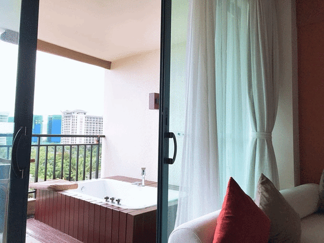 当天我们住在了 三亚湾 的国光豪生度假酒店,距离机场也比较近。这家酒店也是我此行推荐的第二家酒店,从位置到服务、环境都特别好,房间也很宽敞!酒店的环境真的很漂亮,泳池也很干净,只不过我们俩当天太累了也没有力气在酒店里臭美拍照。