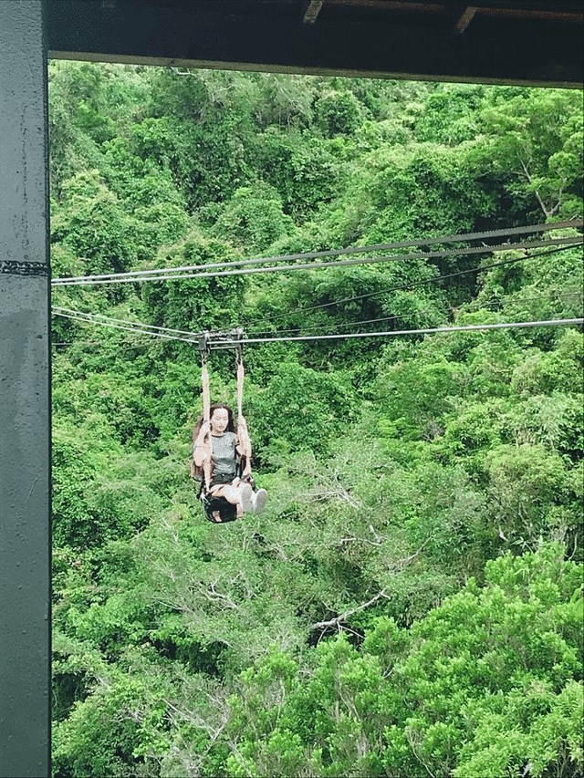 一路游览景点,随后乘坐电瓶车来到了山顶,也就是我们今天的目标:滑索!我们没有休息,直奔滑索起点,100/人,分两段滑倒山下。