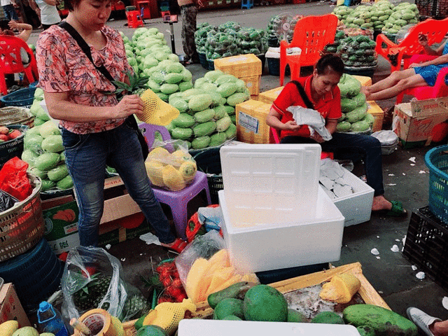 第二天我们睡到了自然醒,其实也就睡到了8点多就醒来了,按照计划我们准备带一些当地的水果回去,因为真的很便宜、很好吃。我上网查了以后,没有去人多商业化很严重的第一市场,而是看了网友推荐去了鸿港新贸城,这是一个特别大的批发市场,里面的水果也都很新鲜,不过一定要多问几家,多尝几家的水果,虽说都很好吃,其实还是有区别的!最后我们买了三大箱的芒果、香蕉、凤梨、山竹和毛胆。