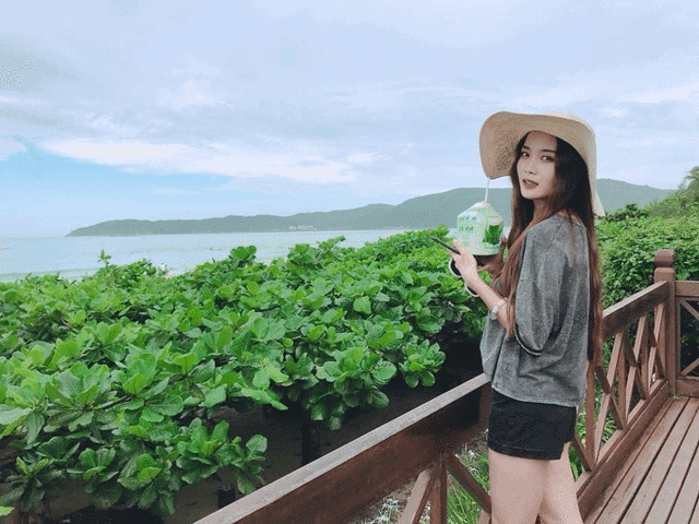 小黑从酒店的冷饮机中买了一个冰镇椰子,很甜,很清凉