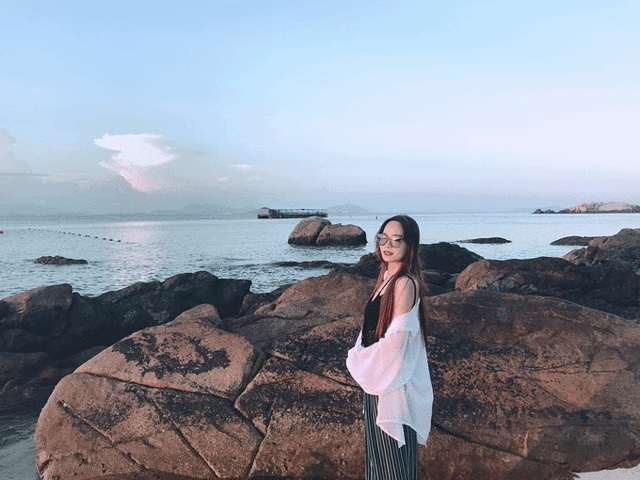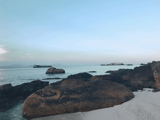 海滩上的人很少,大部分游客都已经乘坐最后一班船离岛,只有留宿岛上的一部分。海滩边上有很多鳞次栉比排列在沙滩边的礁石,你随便挑上一块坐下来,就是一处风景!