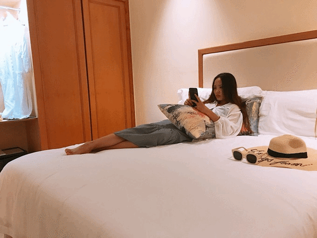 回到酒店,我们俩都有点累了,她躺到了床上,我悄悄偷拍一张,我也躺到了沙发上。确实酒店不论从服务还是设施都和昨天的海韵有一定差距,不过真的是已经对的起这个价格了,性价比确实超高!带双早,还赠送了鱼疗和30分钟旅拍,中档的酒店里,我真心推荐这一家!