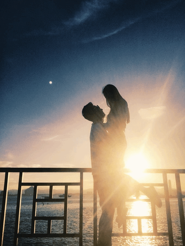 太阳落得太快了,像坐了滑梯一样,一转眼天色就暗下来。照片里的我们都显得模糊了。