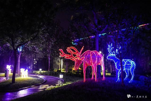 这里的夜场叫做“会发光的植物园”,一进门就看到各种动物造型的灯组并立两侧,非常生动,小丫头指着自己认识的动物挨个数过去,开心的要跳起来。