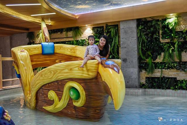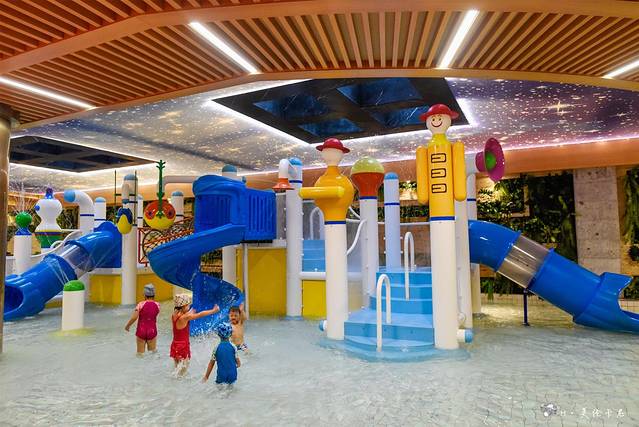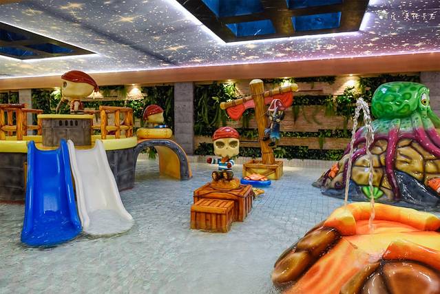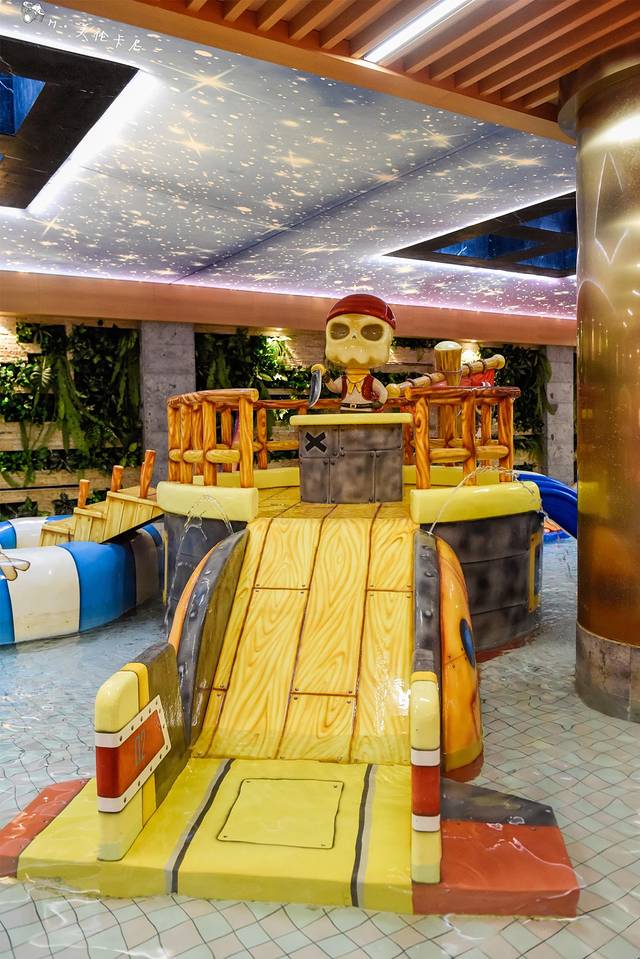 有着水榭楼台、竹影扶疏的室外温泉区,有着隔窗竹席、优雅静谧的日式汗蒸区,还有一个超级无敌可爱的海盗主题戏水乐园!