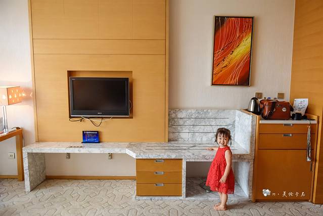 不知道是不是小孩子都爱住酒店,小丫头一进了房间就开始撒欢,要么在大床上跳来跳去翻来滚去,要么就是跑到露台上闹着要在这里吃午饭。