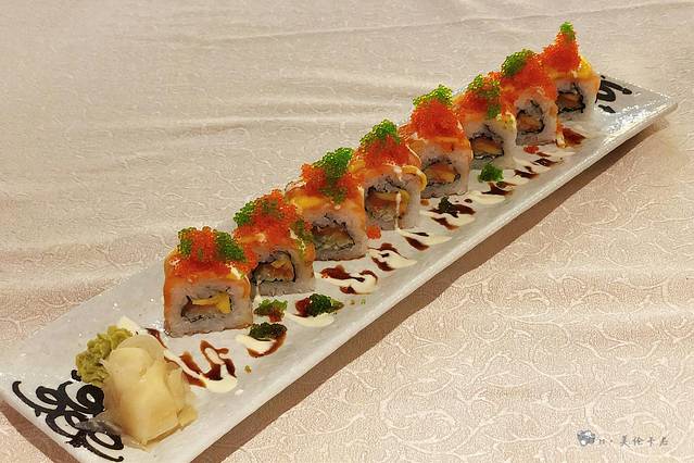 芒果三文鱼之恋寿司有着厚厚的一层鱼籽,味道和口感都非常有层次;