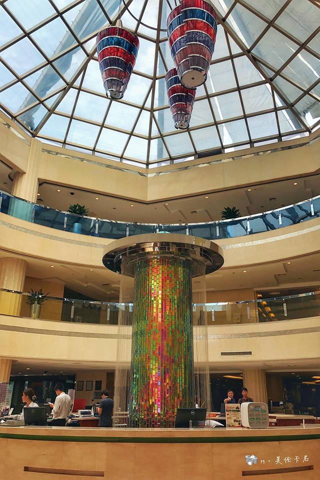 在房间露台吃午饭虽不可行,但顶着炎炎烈日又懒得远走,就选在酒店一楼的美泉宫解决午餐。美泉宫虽是中规中矩的中式装修,却也暗藏了一点小心机,精致优雅的水晶吊灯居然是个大型风铃,空调一开就发出“叮叮当当”悦耳的声响,小丫头对这种又好看又动听的新鲜事物稀罕到不行,硬是把我的手机要过去给吊灯拍了一堆照片……
