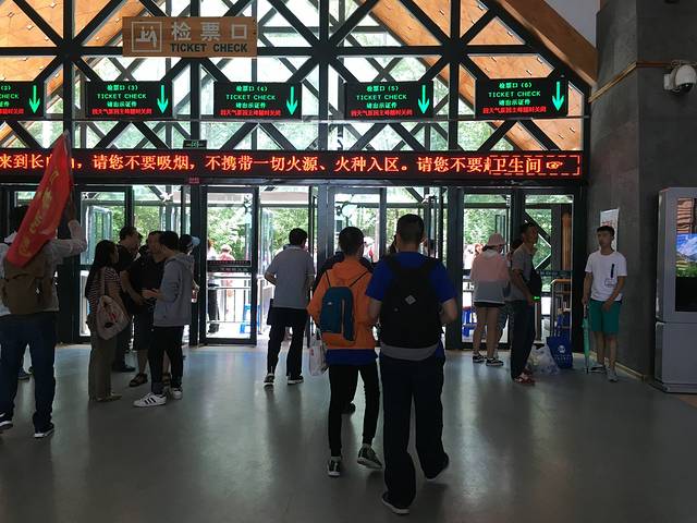 前一天在路上下载了长白山app,买好了25日早上8点-9点的长白山门票(预约时间之后都可进入,提前不能进)和85元环保车票。一大早8:30吃过早餐拿着酒店前台的确认单到客服中心兑换各种票券【6月1日至10月31日期间包含一次(2位成人及1位1.2米以下儿童权益):汉拿山温泉门票; 每日包含(2位成人及1位12岁以下儿童权益):室内水乐园门票;征西滑道;长白山西景区换乘中心定点穿梭巴士;机场穿梭巴士接送服务;趣味自行车;山地观光缆车; 新增包含门票:佛库伦夜市,征西栈道,长白花海,萌宠乐园(6月16日至10月7日);田园采摘,小小农夫(6月30日至10月1日)】