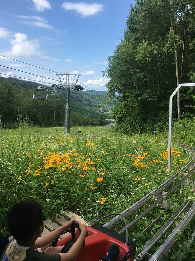 吃过早餐,预约了酒店下午4点半的彩绘长白课程,然后直奔征西滑道。酒店位置优越,离哪儿都很近,去滑道每半个小时一班电瓶车上山,小路上景色和空气都很美丽,小风吹得人很舒服,夏天难得!