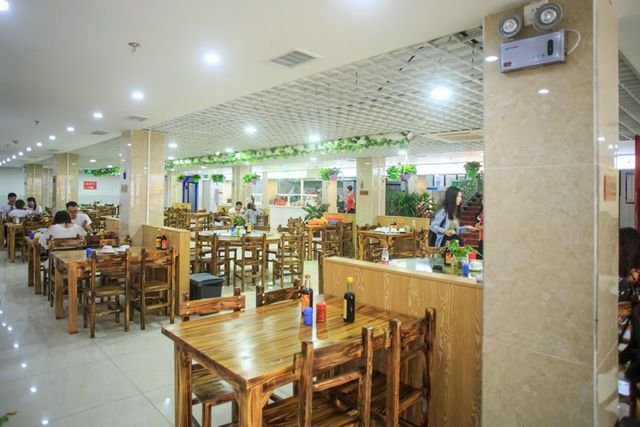 餐厅面积660平米,包含9个包厢,每个包厢以海鲜名命名;大厅摆放9张圆盘桌、12张四方桌,餐厅可以同时容纳两百余人。桌椅全部是木制的,为餐厅增加清凉的视觉效果。
