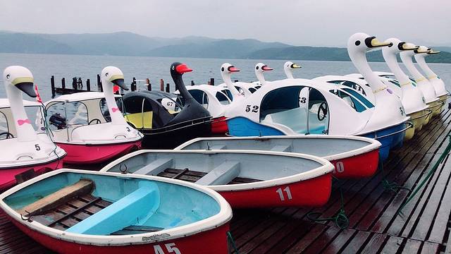 大雨天,鸭子船都不营业,