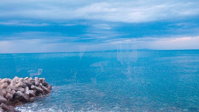 坐火车的时候,会经过一段海岸线,风景超赞。