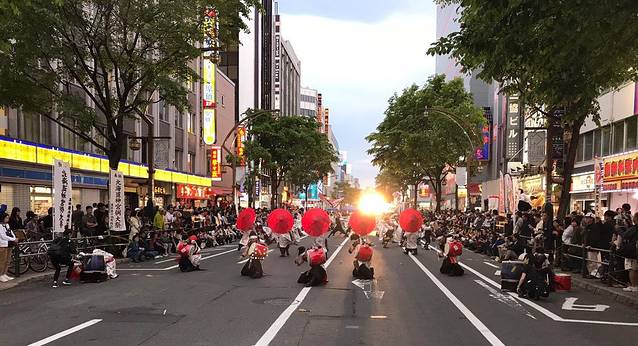 1991年,一名学生走访了 四国 的小镇,被高知县Yosakoi节的盛况所感动,于是就诞生了属于 札幌 的YOSAKOI索朗节。该节日由100名学生共同开创,采用了将高知县Yosakoi节与 北海道 民谣索朗节加以混合的方式,并在此基础上发展为舞者、观众一起狂欢的全城欢庆活动。1992年第一次举办时,共有10支队伍和20万名观众参与,2008年则发展到330支队伍、33000人参加,动员观众人数共计200万人的庞大规模。YOSAKOI索朗节和冬天举办的“ 札幌 冰雪节”并列为 札幌 盛大节日活动。