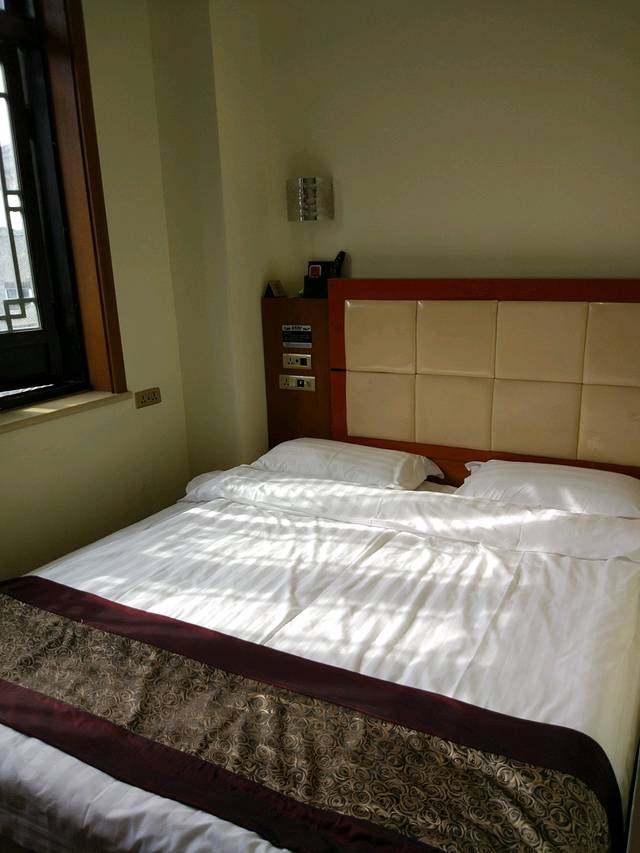 房间好小,是住过的最小的地方了。我定的最小的单人间,可以带个孩子住。