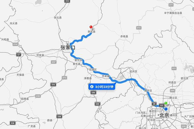 北京-崇礼开车大约3-4小时,路线图如下👇