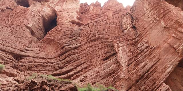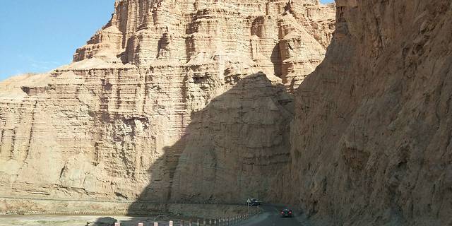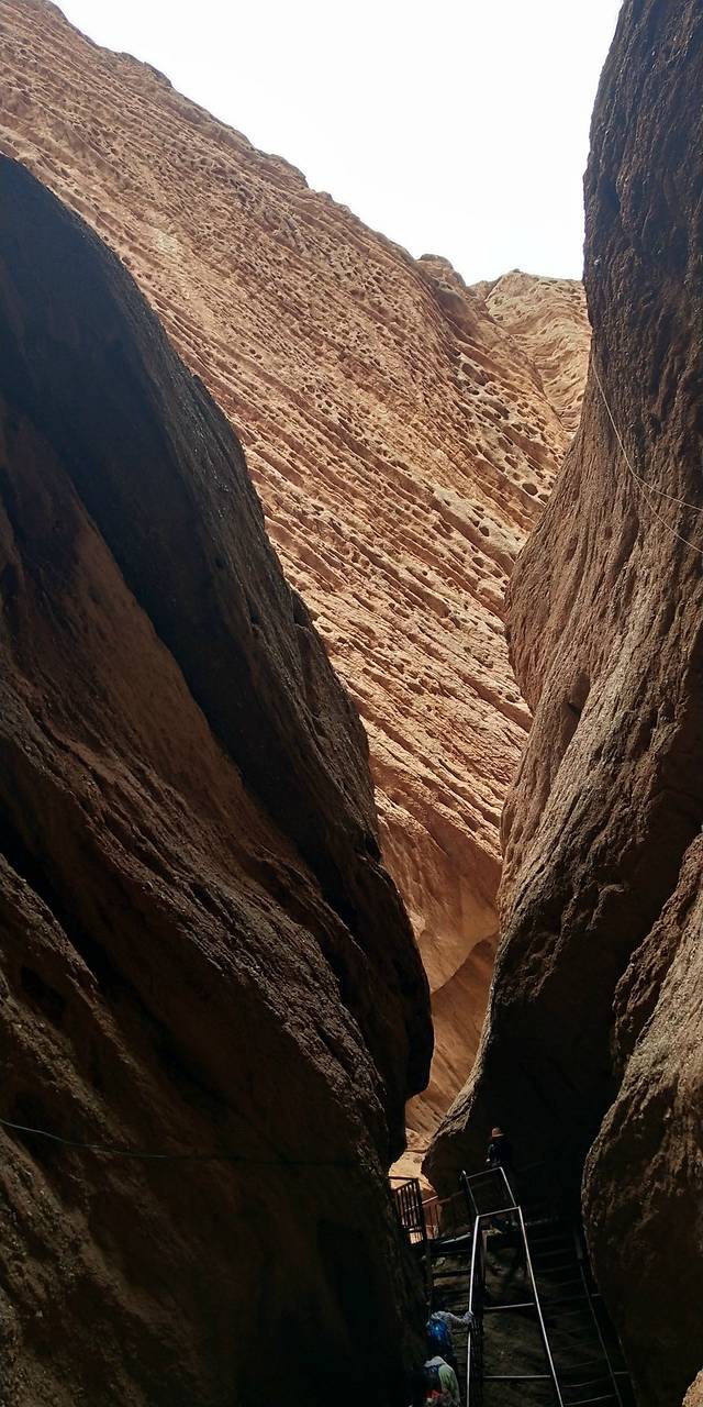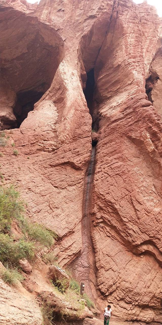 独库公路景区,库车大峡谷,如果刚下过雨的话最好是穿凉鞋进去,峡谷地面水比较多。