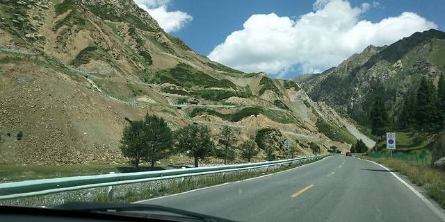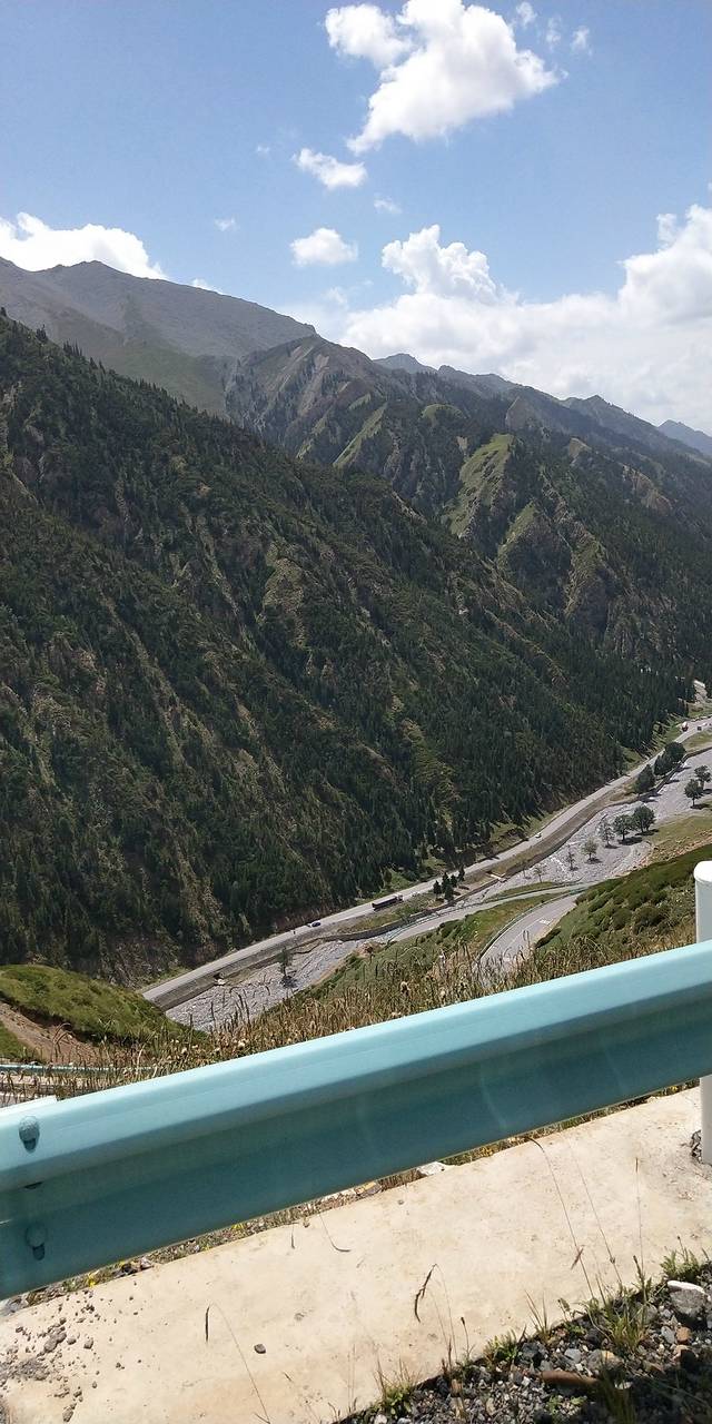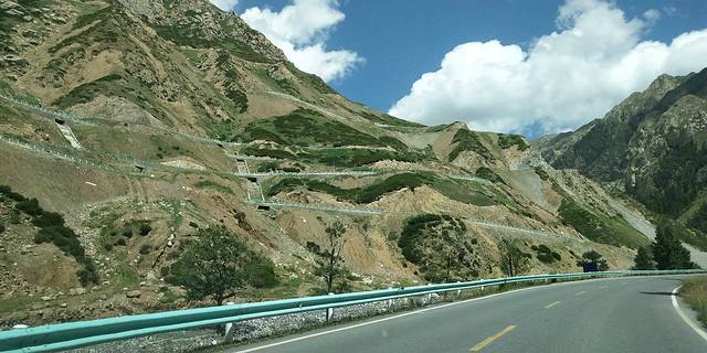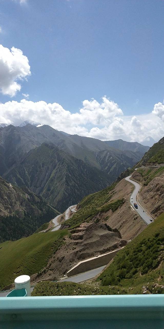 翻越天山,景色越来越美,道路越来越险,开车一定要注意安全,盘山路。务必慢慢慢