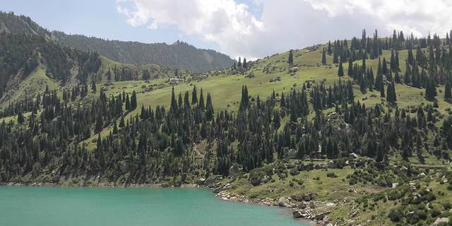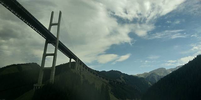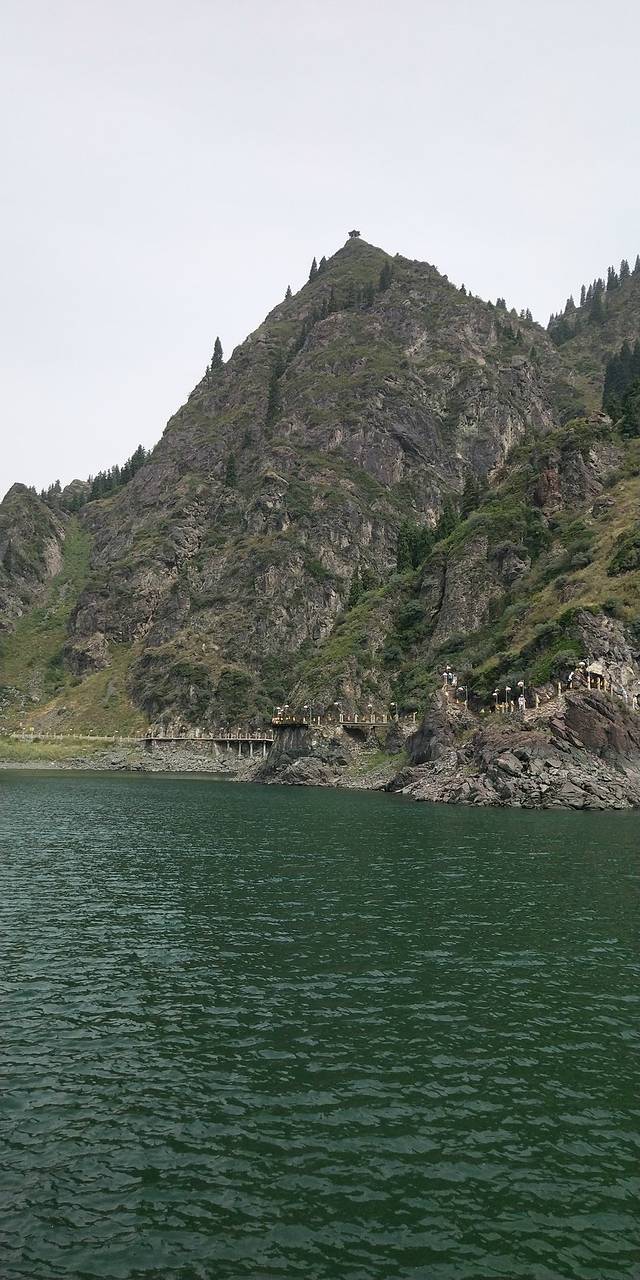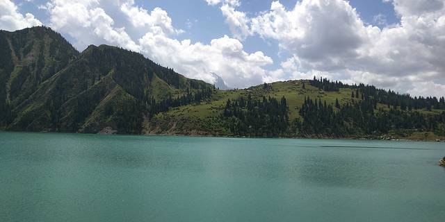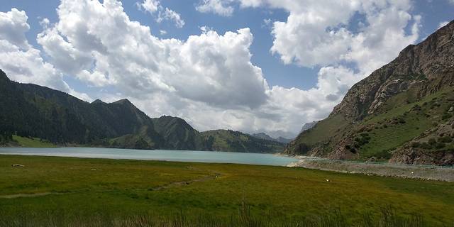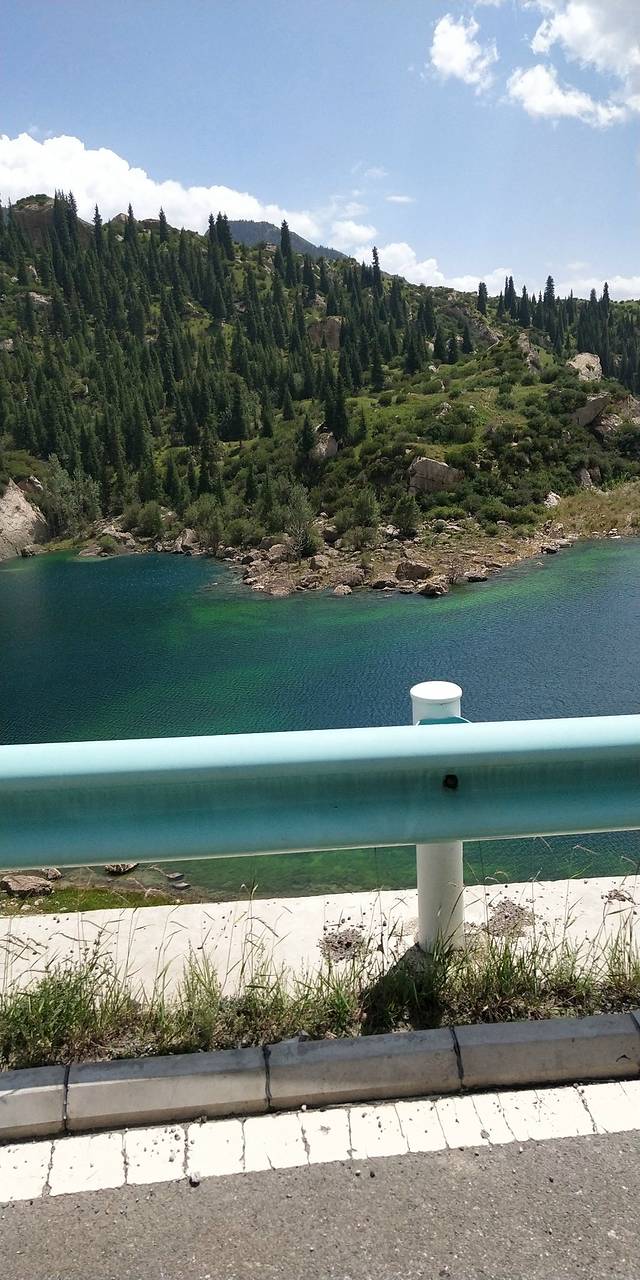 果子沟大桥,不可以停车的。直接开过大桥过一个隧道到达赛里木湖。可以开车沿湖行驶观赏,赛里木湖的水很干净的。