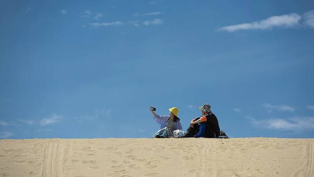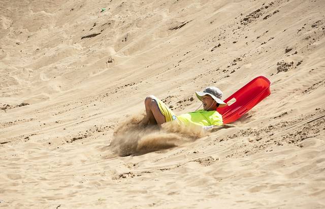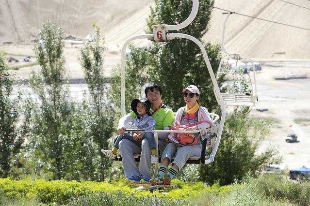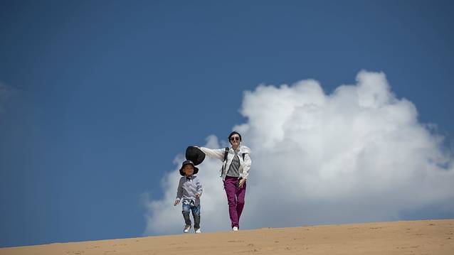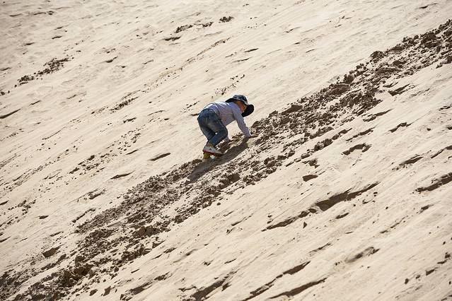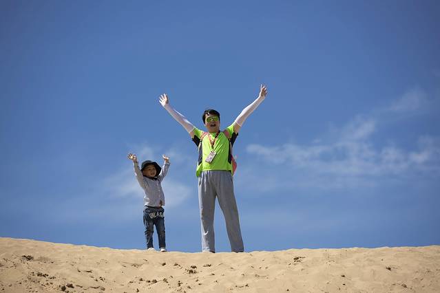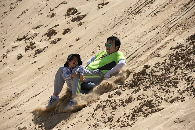 早餐后,在酒店附近取了我们的第三辆车,一辆本田CRV,也是计划用车三天,上午选择去距离呼市190公里的库布齐沙漠响沙湾景区。库布齐沙沙漠是中国第七大沙漠,但我们去的响沙湾景区只是库布齐沙漠的一个小角,景区开发了很多游乐项目,甚至还有沙漠泳池、豪华酒店,而且是通过套票打包出售,商业气氛有点过于浓厚,如果没有小朋支且是结伴出游的话倒是可以从外围尝试玩玩沙漠穿越,我们因为带了小朋友,所以也仅是进去坐了下索道,玩了玩滑沙,景区里滑一次20,所以建议自已从景区外买个滑沙板带进去,不用排队,可劲滑。沙漠紫外线非常强烈,一定要做好防护。我们带了小朋友,也没敢滞留太久,大约下午四点离开景区。