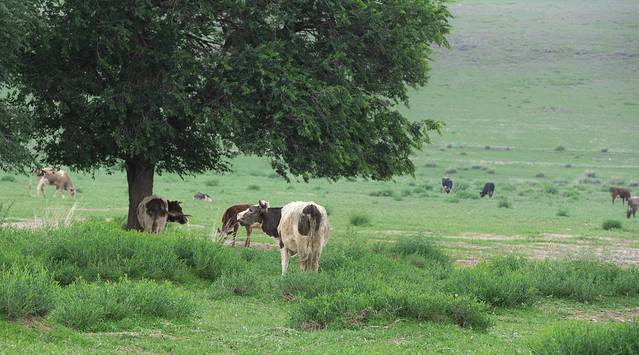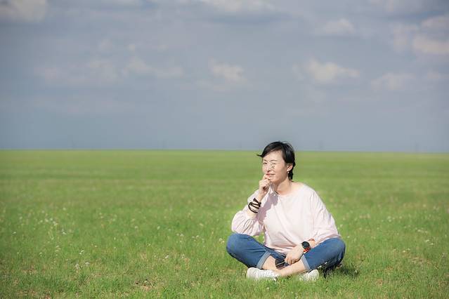 早晨五点,刚睡了3个小时的我被毛老师拉起来看日出,但遗憾的是我们并没有如愿看到草原日出,原因是我们的营地处在一个相对凹地,当太阳从丘陵后现出身形时已经十分强烈。上午带孩子们骑了马,渐近中午,日光越发强烈,已经不太适应户外活动,于是我们早早吃完午饭,12点左右便离开了希拉穆仁草原。