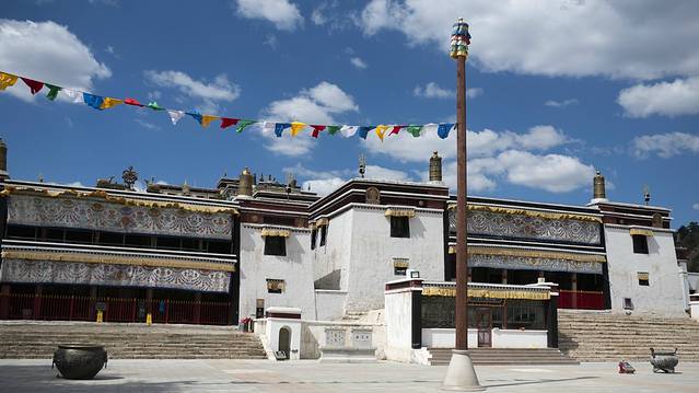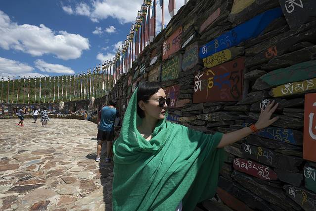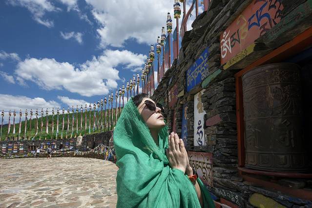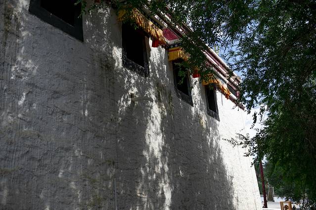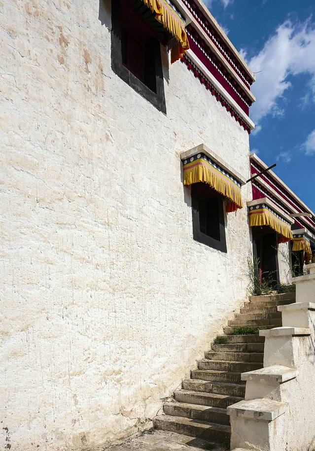 由于昨天朝拜五当召未果,我们临时更改了原定方案,把去呼市大昭寺改为了五当召,重新设定了路线,避开了昨天走的沙明线,中午前后终于顺利来到五当召。五当召,位于内蒙古自治区包头市石拐区东北约45公里的吉忽伦图苏木五当沟内的大青山深处,是一世活佛罗布桑加拉错以西藏扎什伦布寺为蓝本兴建,与西藏的布达拉宫、青海的塔尔寺和甘肃的拉卜楞寺齐名,是我国藏传佛教的四大名寺之一。寺院依山而建,白色为主体,层层叠叠。建筑物上的饰带,黑色小窗,红色柱廊,与蓝天、白云交相辉映,显得格外光彩夺目而璀璨。寺院内游人很少,显得非常安静,与我去年曾到过的塔尔寺里游人如枳的场景对比鲜明,我们在寺院里静静游走,我想无论是为了追逐信仰还是旅游观光,当双脚踏上这方净土,双目轻闭,心中默念祷告,一切都会慢慢释然。