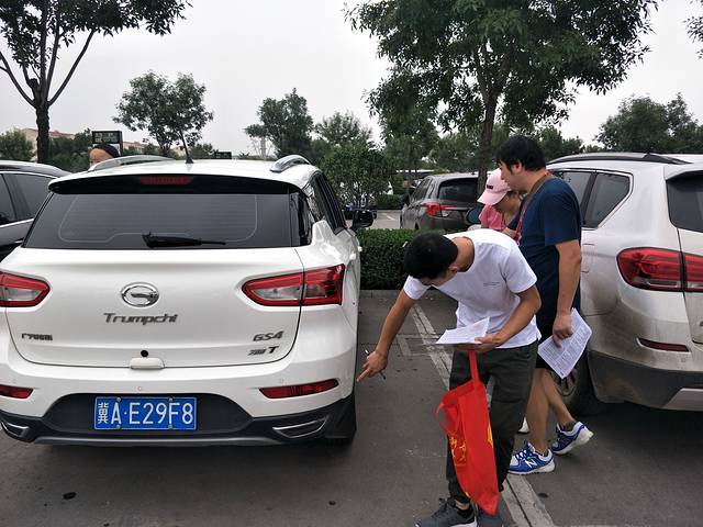 我们租用的第一辆车,传祺GS4手动两驱SUV,太原机场停车场办交验手续