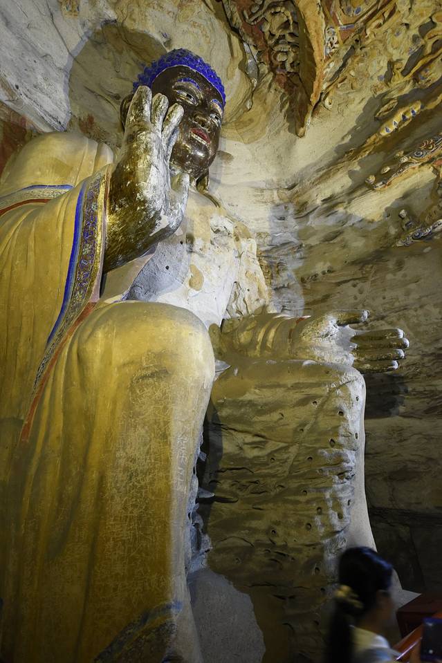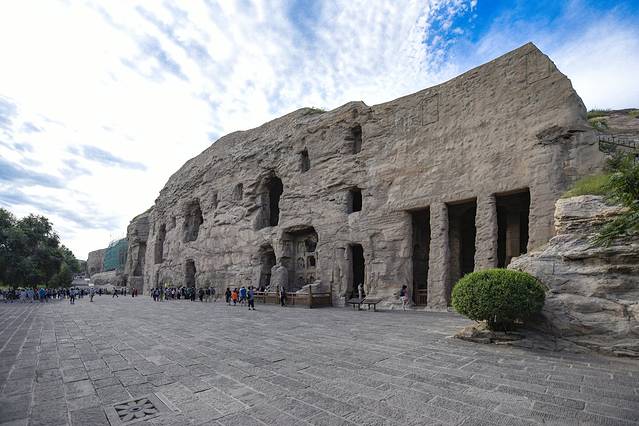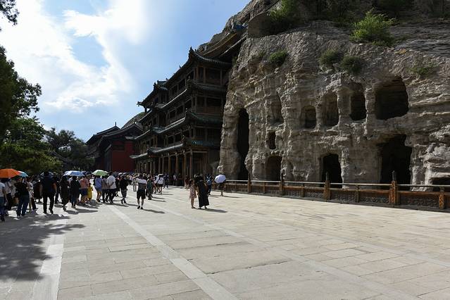 这次租的是一辆上汽大通G10七座MPV,也是我们行程中用得最宽敞舒服的一辆车,这辆车将为我们服务三天后在乌兰察布异地还车。计划早上九点应该出发,但头天晚餐时出了一个突发状况,毛老师吃猪头肉时不小心被小肉骨头咯断了牙,一个奔着内蒙烤全羊去的主,简直跟废了武功没有区别,所以接了车先去了太原市口腔医,把毛老师的牙做了临时处置。在医院延误了近两个多小时,十一点才出发。从太原到云冈石窟290公里,车程三个半小时,下午二点半左右到达云冈石窟。云冈石窟的造像气势宏伟,内容丰富多彩,堪称中国石刻艺术之冠,被誉为中国古代雕刻艺术的宝库。按照开凿的时间可分为早、中、晚三期,不同时期的石窟造像风格也各有特色。早期的“昙曜五窟”气势磅礴,具有浑厚、纯朴的西域情调。中期石窟则以精雕细琢,装饰华丽著称于世,显示出复杂多变、富丽堂皇的北魏时期艺术风格。晚期窟室规模虽小,但人物形象清瘦俊美,比例适中,此外,石窟中留下的乐舞和百戏杂技雕刻,也是当时佛教思想流行的体现和北魏社会生活的反映。下午五点半结束参观,驭车前往乌兰察布,两地相距130公里,沿二广高速行车大约一个半小时,七点多抵达乌兰察布,夜宿映山大酒店。