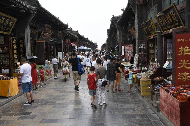 早上六点的飞机(特价机票,咱就不在这挑理儿了),前一天约好了滴滴专车,四点一刻从家出发,四点五十顺利到达机场,六点飞机准点起飞,八点飞抵太原,提前租好的车直接约在机场交车,一刻都没担耽,是一辆传祺GS4手动两驱SUV,选这辆手动也是没有得选择,就因为它可以在机场交车,当然,价格也很便宜,200多一天,好在我还能开手动档。机场验完了车,导航直接锁定第一站平遥古城,太原机场距离平遥古城100公里,车程一个半小时,上午十点钟到达。平遥古城位于山西省中部平遥县内,始建于西周宣王时期,被称为“保存最为完好的四大古城”之一,也是中国仅有的以整座古城申报世界文化遗产获得成功的两座古城市之,是国家五A级景区,古城免门票开放,但部分景点需要凭票入内,例如平遥县衙、日升昌票号、协同庆钱庄、镖局、城门楼等等,在古城逛了一圈,买了两斤平遥牛肉,又找了家特色面馆,把当地面食吃了个遍,什么拷姥姥、碗秃、刀削面等等。平遥牛肉很有特色,平遥盛产土盐,当地人习惯把宰杀后的牛肉用土盐先行腌制,然后煮熟而食,在长期实践中形成了“先腌后煮,熄火慢焖”的制作工艺,曾被慈禧御封为“回銮贡品”,称其“见其色而生津、闻其香而提神、食其肉而解困”,可见这牛肉不一般。午餐后,两个妈妈去看《又见平遥》,毛老师看着两娃,为了确保行车安全,我找了一凉处迷瞪了一觉。下午四点离开平遥,按原路返回太原,夜宿太原。