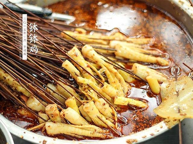 它是以陶器钵盛放配以麻辣为主的佐料,加上多种调料的去骨鸡片拌和而成。有皮脆肉嫩,麻辣鲜香,甜咸适中的特色。吃奶汤面时配以钵钵鸡,别具风格