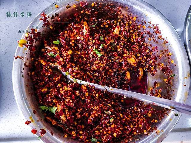 正宗的桂林米粉是伴着吃的,吃完再自己去接点汤。可以配上素鸡和豆腐干。素鸡和豆腐干是油炸过的然后浸泡在麻辣卤汁里的
