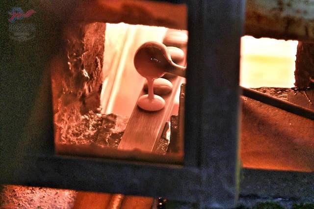 刚“滴”好的永子还呈现出火红色,很快就冷却变成黑色,即使这样也还有几百度的高温,需要持续冷却之后才能抛光。