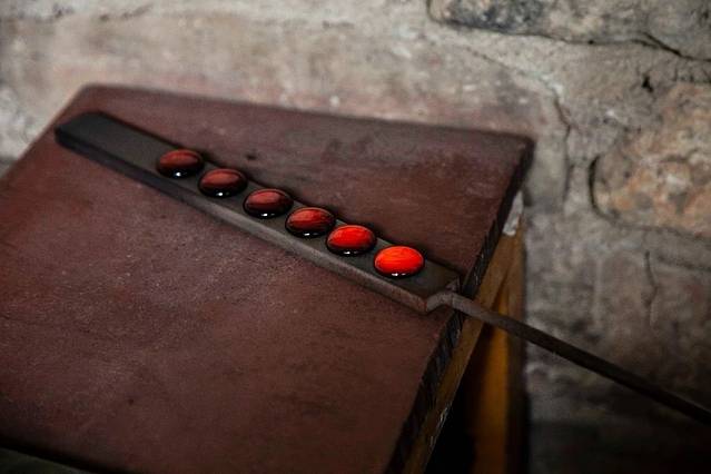 制作永子的材料都取材于保山,例如南红玛瑙、黄龙玉、翡翠和琥珀等珍贵原料,将他们研磨成粉,按照一定的配比在熔炉中煅烧,再用一块细长的平板铁片做底,把融化的原料像水滴一样滴在平板上,就成了一个个初具形态的永子。