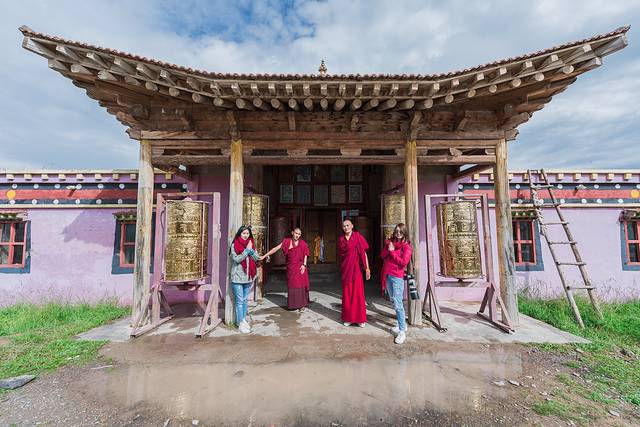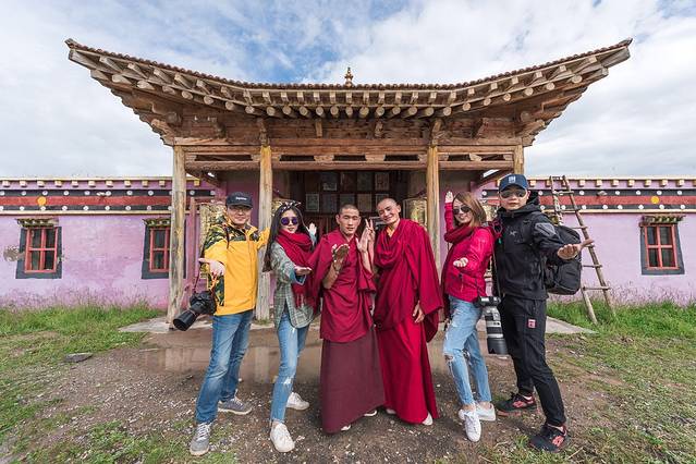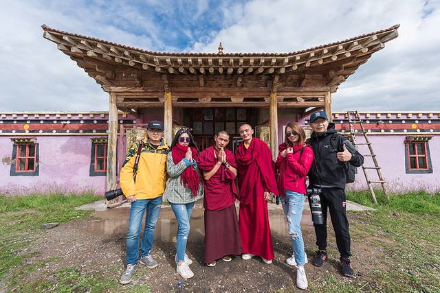 尕日拉寺庙又是石乃亥寺,太阳还说他家就是石乃亥人。这里也是藏传佛教寺庙,三旦和太阳还带领我们参观了寺庙内,还说他们的名字是班禅取得。寺庙还有红色的城墙,简直是照小清新圣地。